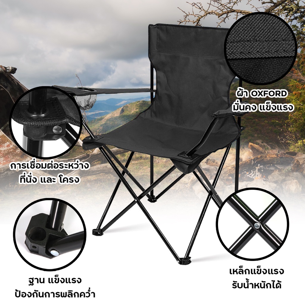 - เก้าอี้สนามพับได้ พร้อมที่รองแขน ที่วางแก้วด้านข้าง