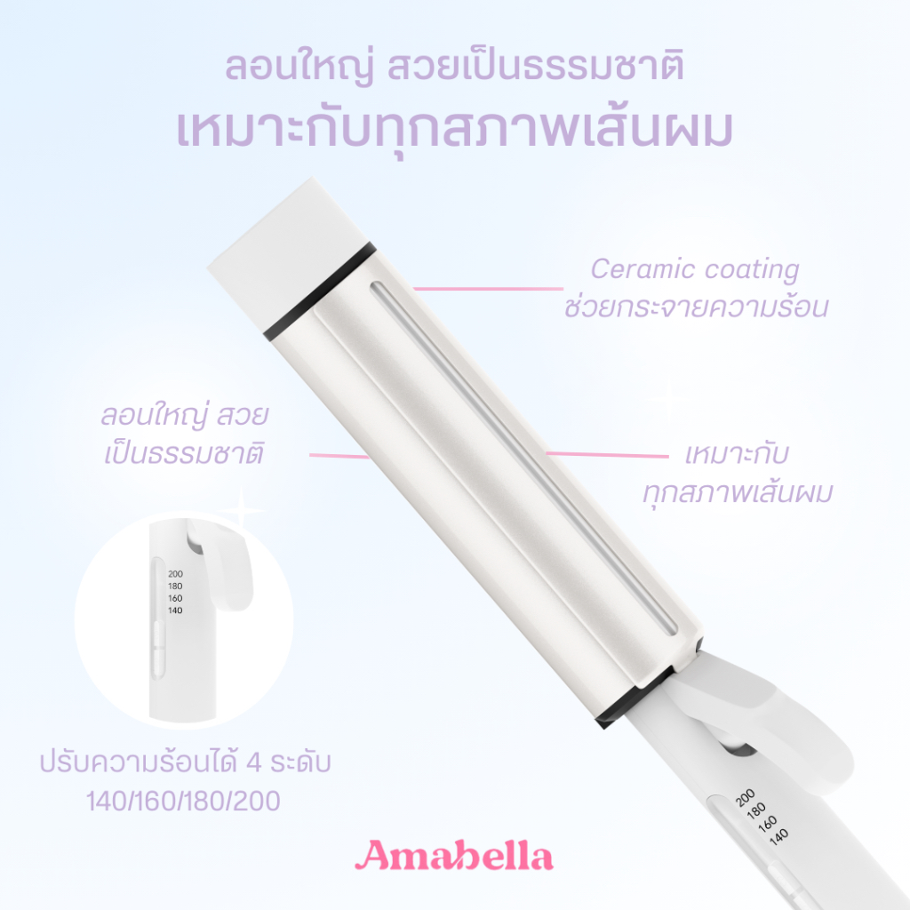 - แกนใหญ่ 38 mm. เหมาะกับคนผมยาว เพื่อผมลอนใหญ่สวย