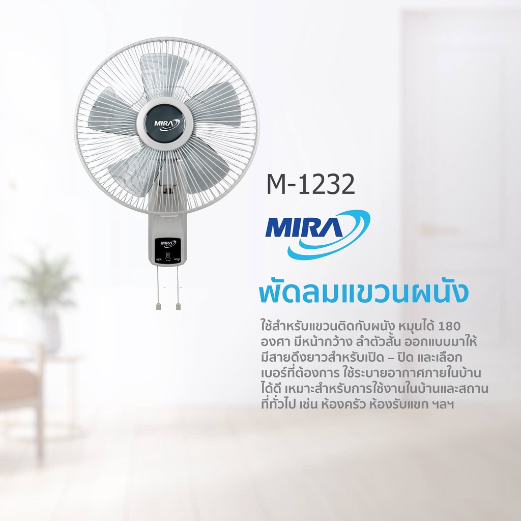 - MIRA มิร่า พัดลมติดผนัง สองสาย รุ่น M-1232