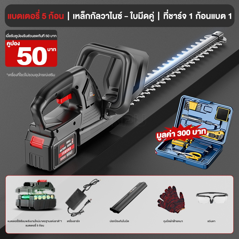 - มีใบมีด 2 ด้านทนทาน แข็งแรง ยาว 50 ซม. ช่วยให้ตัดเร็วขึ้น 40% ลดการสั่นสะเทือน