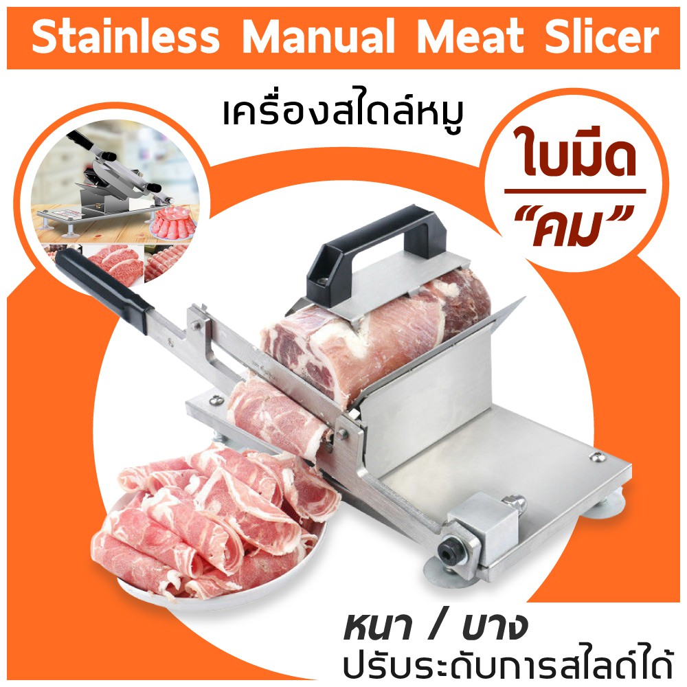 - เครื่องสไลด์เนื้อแบบมือหมุน: ราคาประหยัด เหมาะสำหรับการใช้งานเบาๆ หรือในครัวเรือน