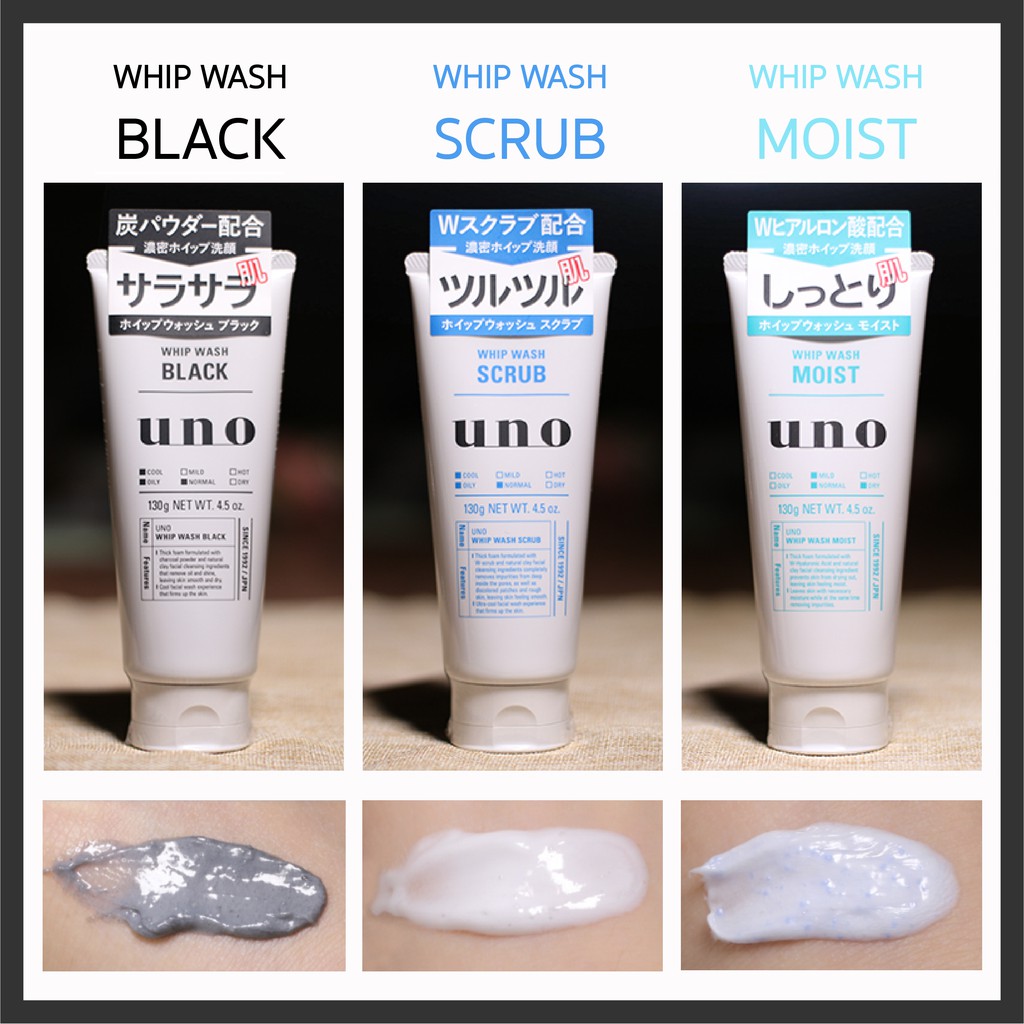 - Shiseido Uno Whip Wash Black, Moist, Scrub โฟมล้างหน้าผู้ชาย