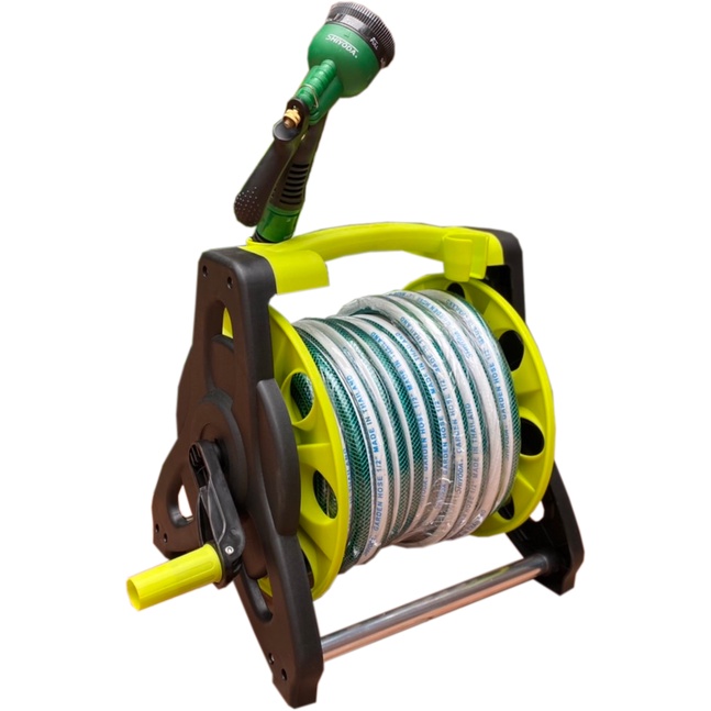 Spring ชุดสายยางโรลตั้งพื้น สีเขียว ขนาด 0.5นิ้ว x 20 เมตร
