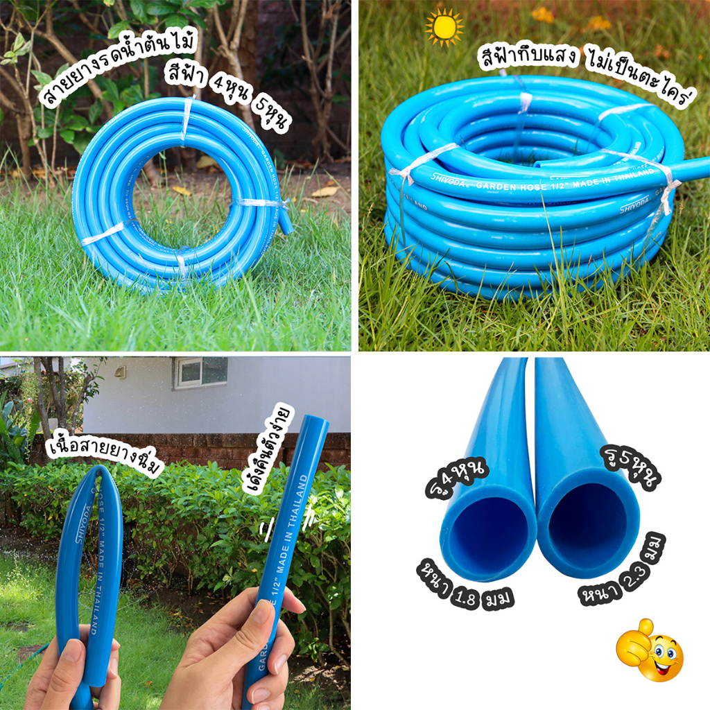 - เนื้อสายยางเกรดพรีเมี่ยม นิ่มมือ แม้จะใช้งานกลางแดด สายยังคงนิ่มนาน ไม่แข็ง แตก ร้าว