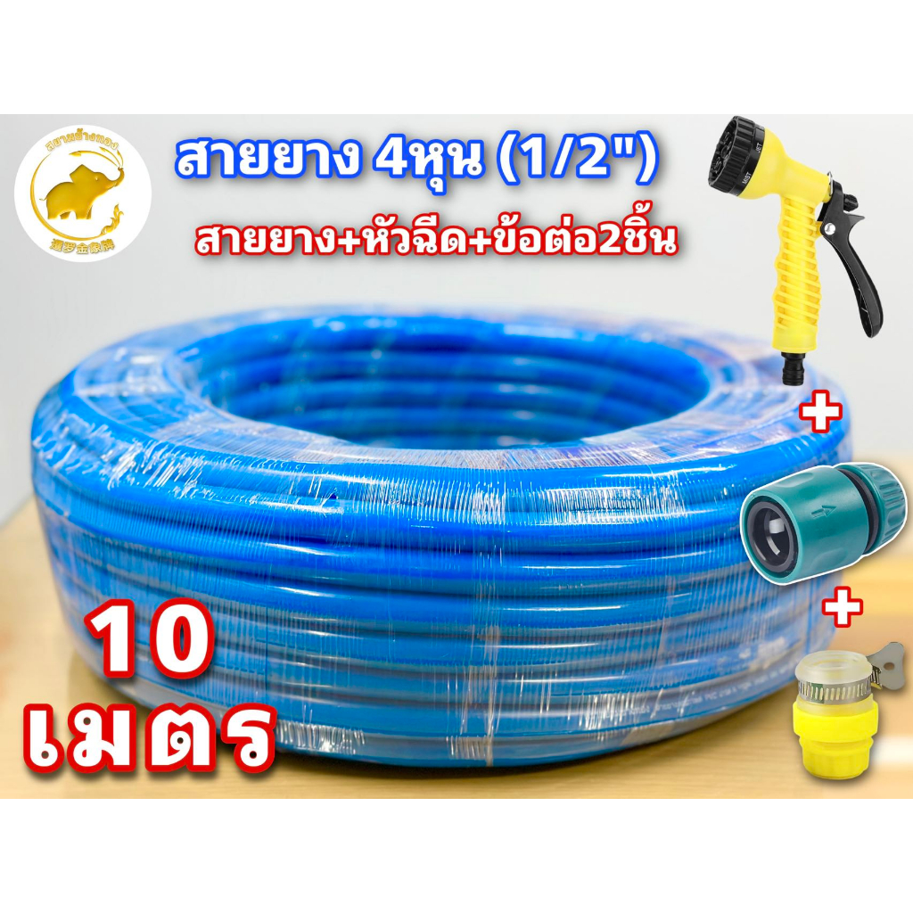 - ชุดสายยางพร้อมหัวฉีด สายยาง4หุน(1/2") X 10เมตร+เเถมอุปกรณ์เสริม3ชิ้น