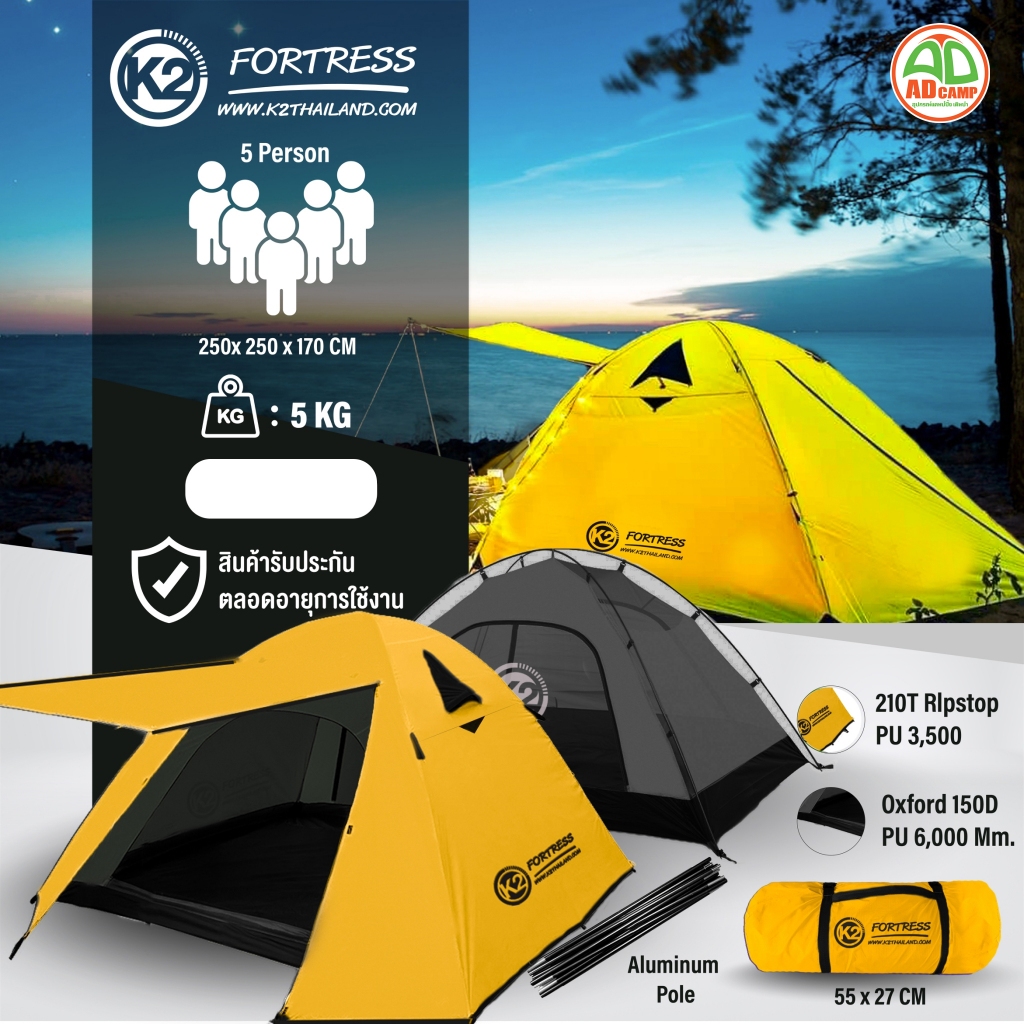 - ผ้าพื้นเต็นท์ :150D เนื้อหนาเคลือบ PU กันน้ำ 4000mm